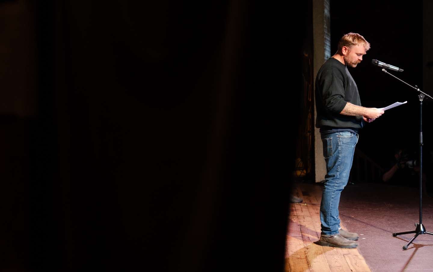 Democratic Senate candidate Graham Platner speaks at a town hall in Ogunquit, Maine.