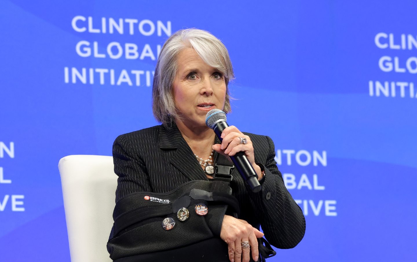 Michelle Lujan Grisham, who recently announced that New Mexico will offer free universal childcare, speaks onstage during the Clinton Global Initiative 2025 Annual Meeting at New York Hilton Midtown on September 25, 2025, in New York City.(JP Yim / Getty Images)