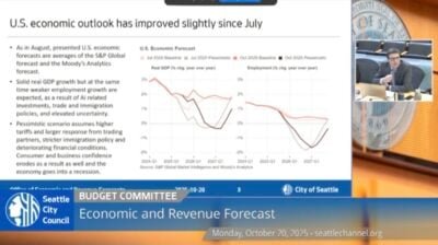 The new forecast part of the city’s ongoing analysis as the council takes on finalizing Mayor Bruce Harrell’s 2026 budget plan appears to be part of what will be ongoing oscillation as economic markets have experienced unprecedented volatility.