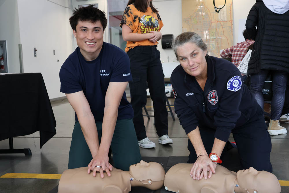 “Hands-only CPR” demonstrations were part of the fair. SFD teaches CPR classes for community members periodically.